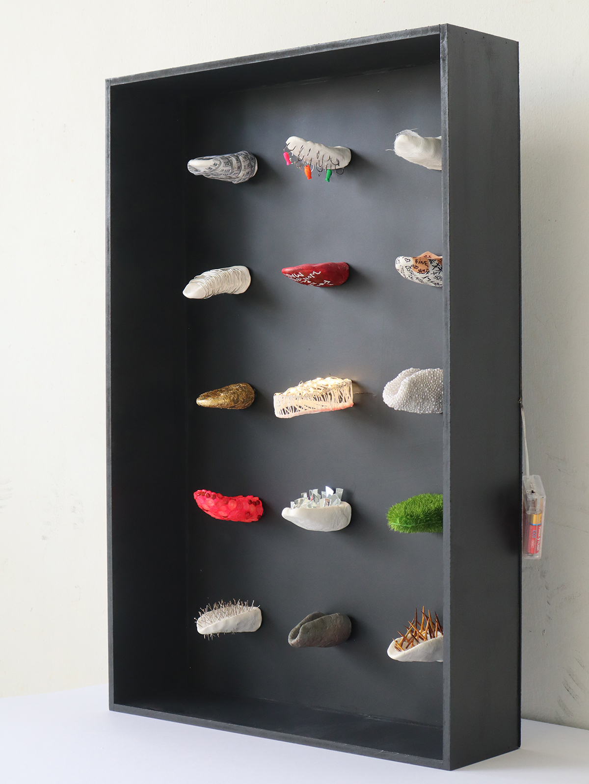 This image comes to mind because there was a lot of influx of negative news, topped with the mistreatment of the dogs at the factory across the road, I felt overwhemed by the powerlessness in that situation - neither do I have the ability to fight, nor the courage to express. At the time when I first did the initial digital sketches, the sea was actually filled with negative elements. When the work entered the final stage, one morning, the sun shone into the room and the light source was reflected on the canvas, projecting HOPE at that very moment, I therefore decided not to prescribe any negative labels, but instead, to give the viewers their choice to decide - do you see Hope or Suffocation?
